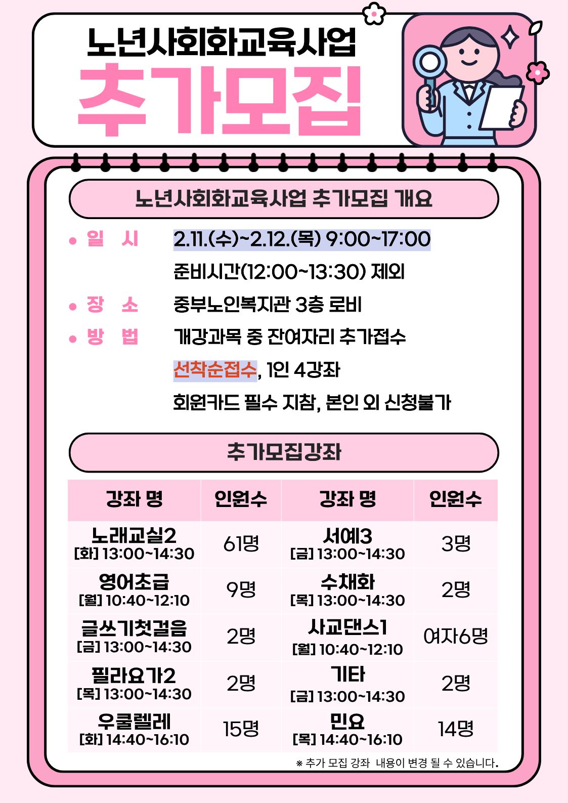 2026년 상반기 노년사회화교육사업 추가모집