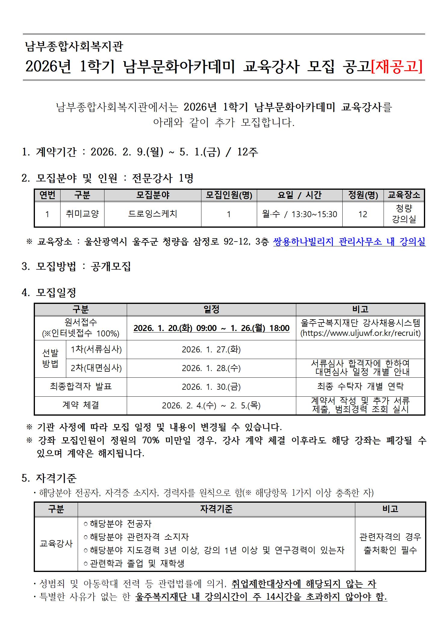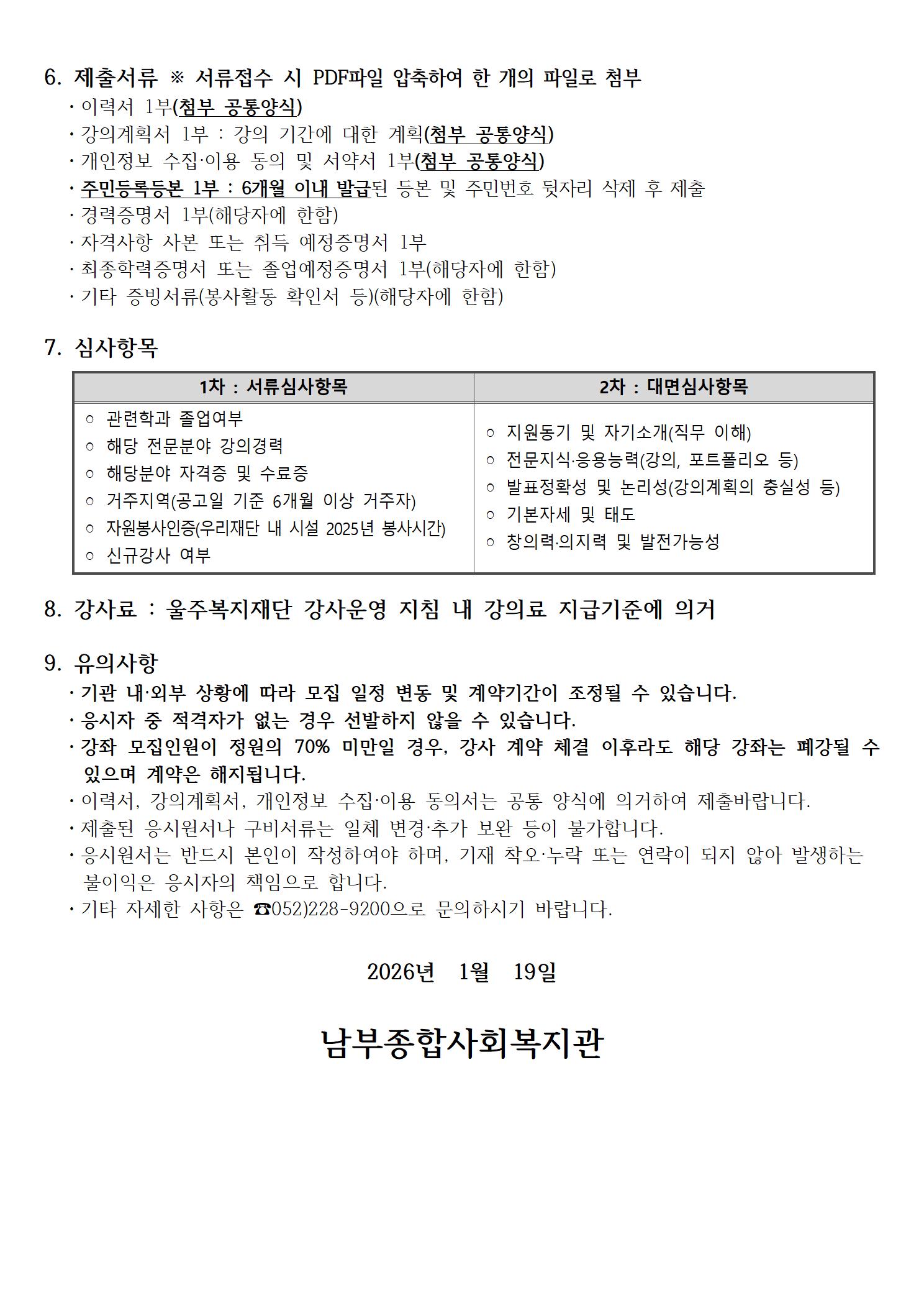 2026년 1학기 남부문화아카데미 교육강사 모집 공고[재공고]