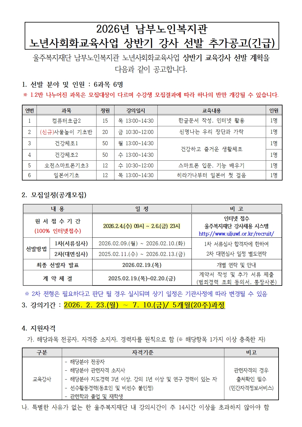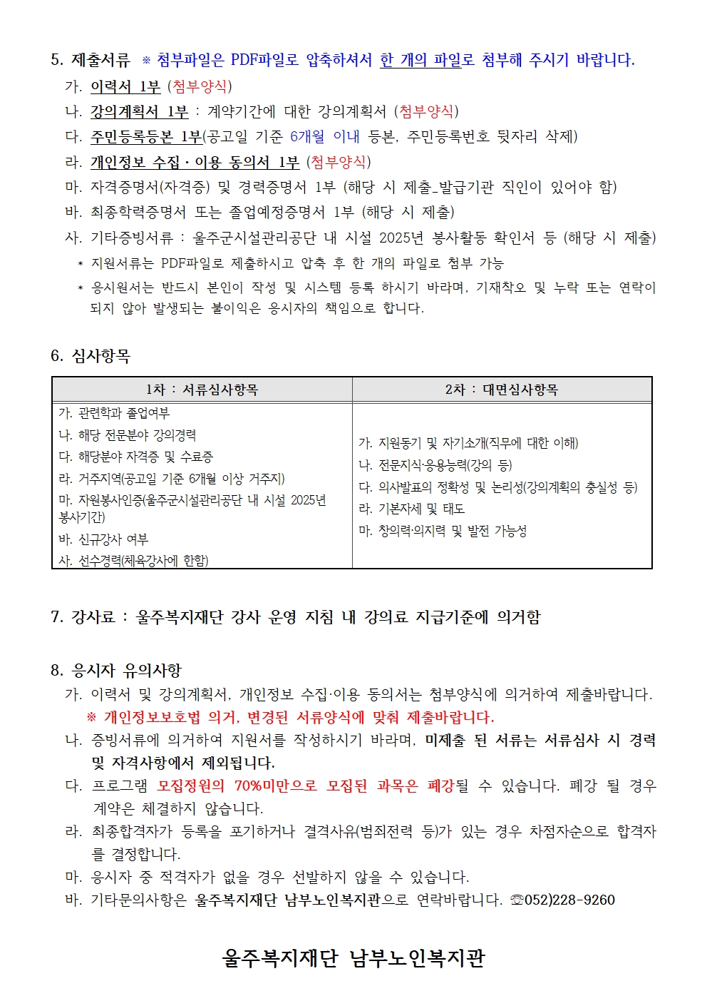 *첨부파일은 울주복지재단 강사채용 시스템에 들어가시면 다운받으실 수 있습니다. http://www.uljuwf.or.kr/recruit/