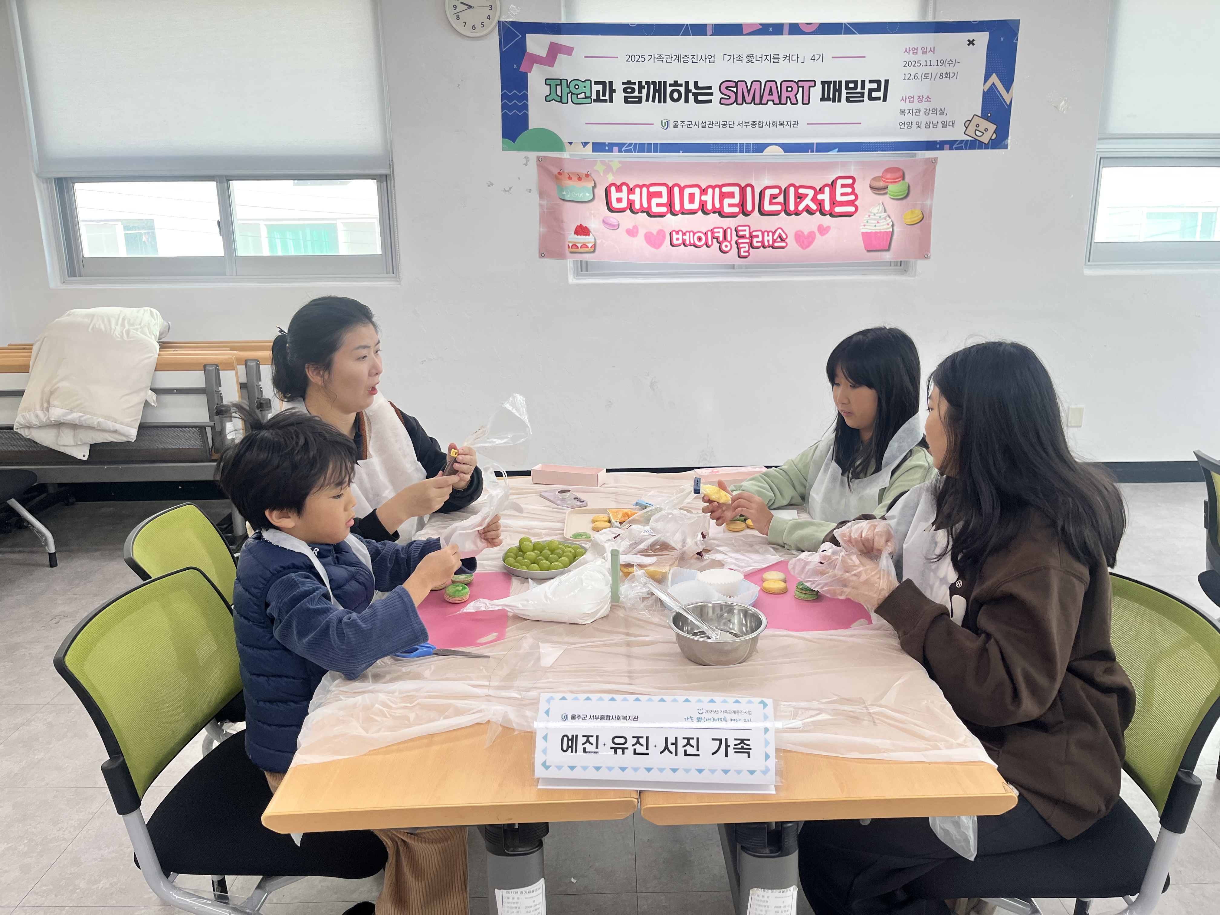○ 일시: 2025. 11. 29.(토) 9:30~11:30○ 장소: 복지관 2-2강의실○ 내용: 패밀리 베이킹 & 쿠킹 데이