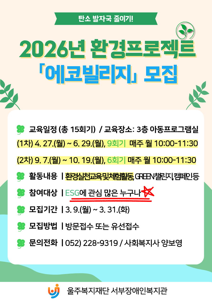 2026년 환경프로젝트 「에코빌리지」참여자 모집
