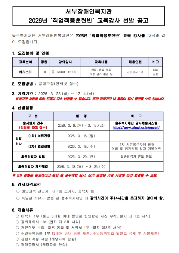 2026년 직업지원사업 강사 모집